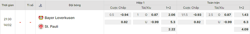 Bảng kèo Bayer Leverkusen vs St. Pauli mới nhất hôm nay